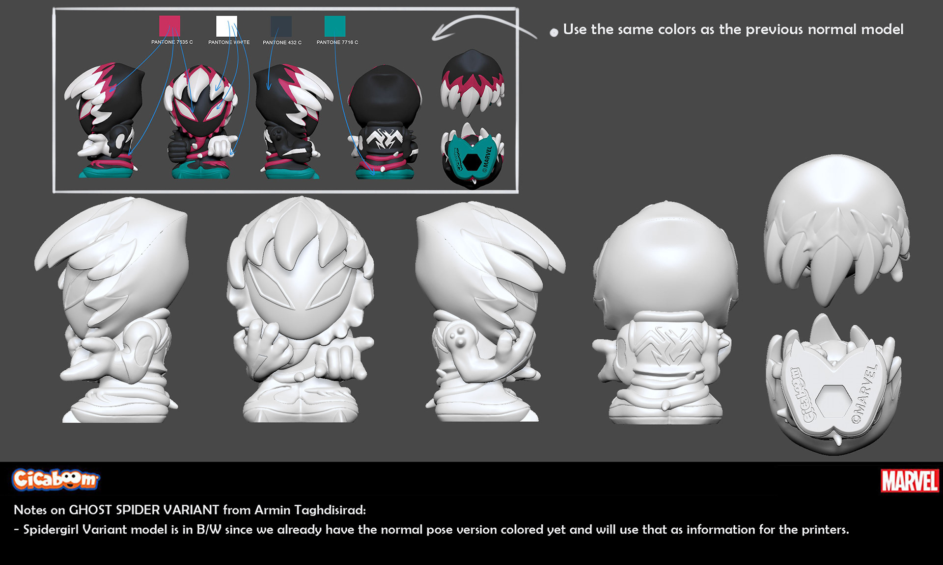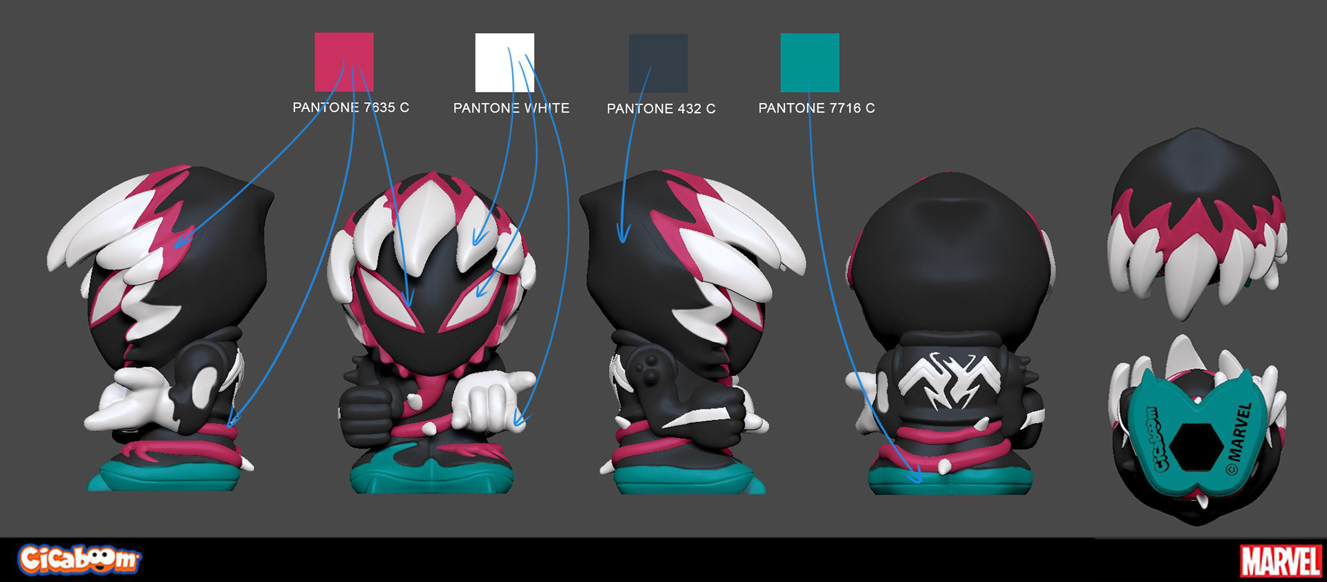 We developed the look of all the characters in collaboration with Marvel and Cicaboom.